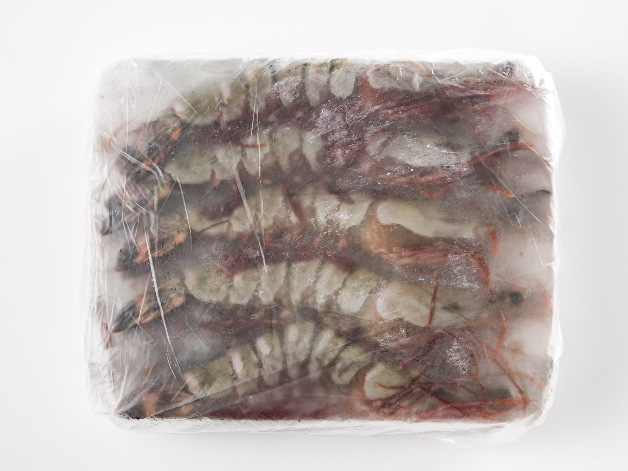 キャプテンフーヅが自信を持ってお勧めする船凍天然海老を氷詰めパックにいたしました。 18~20cm(頭含む)。